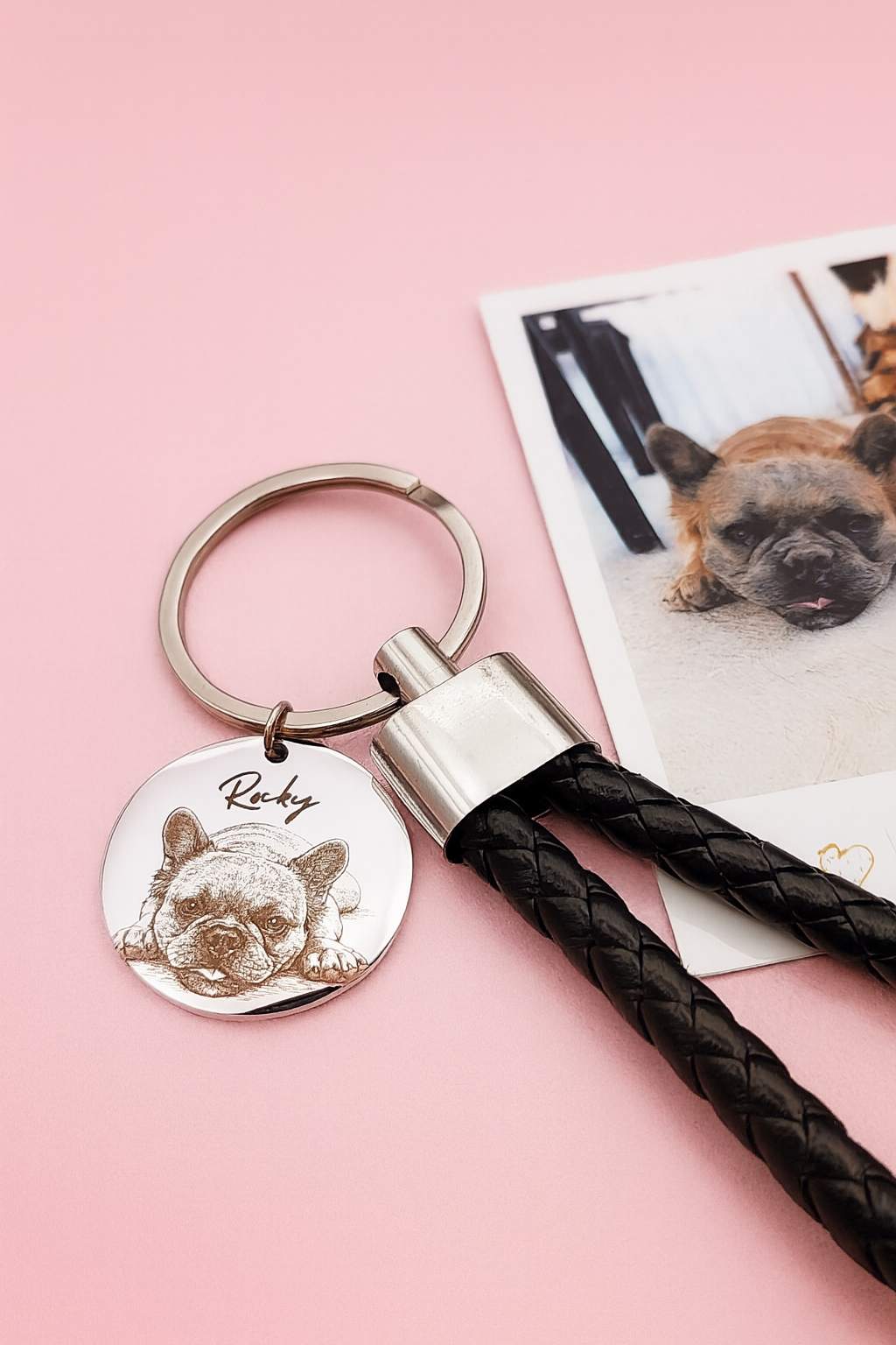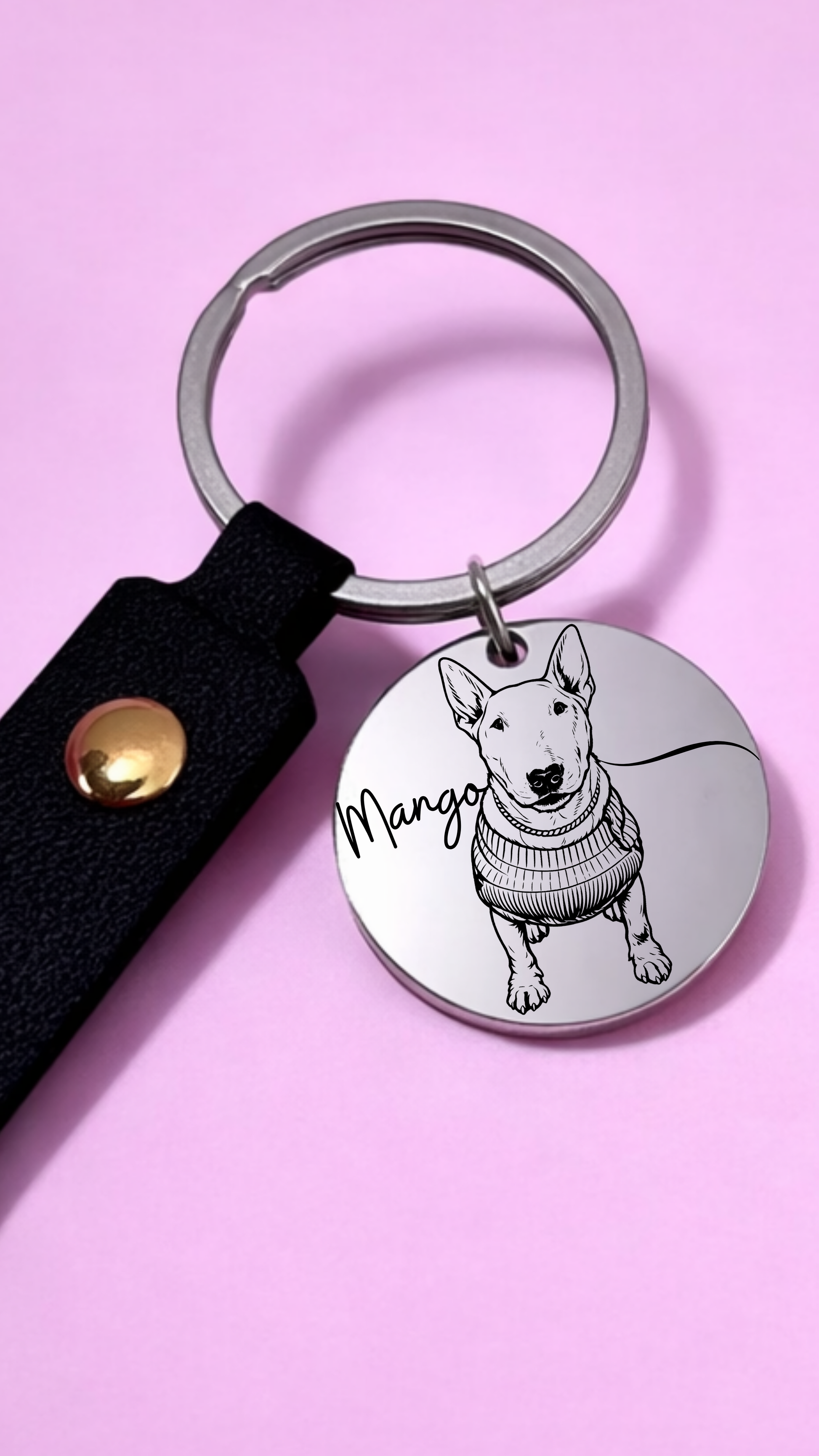 Llavero con foto de mascota tipo vector con nombre.