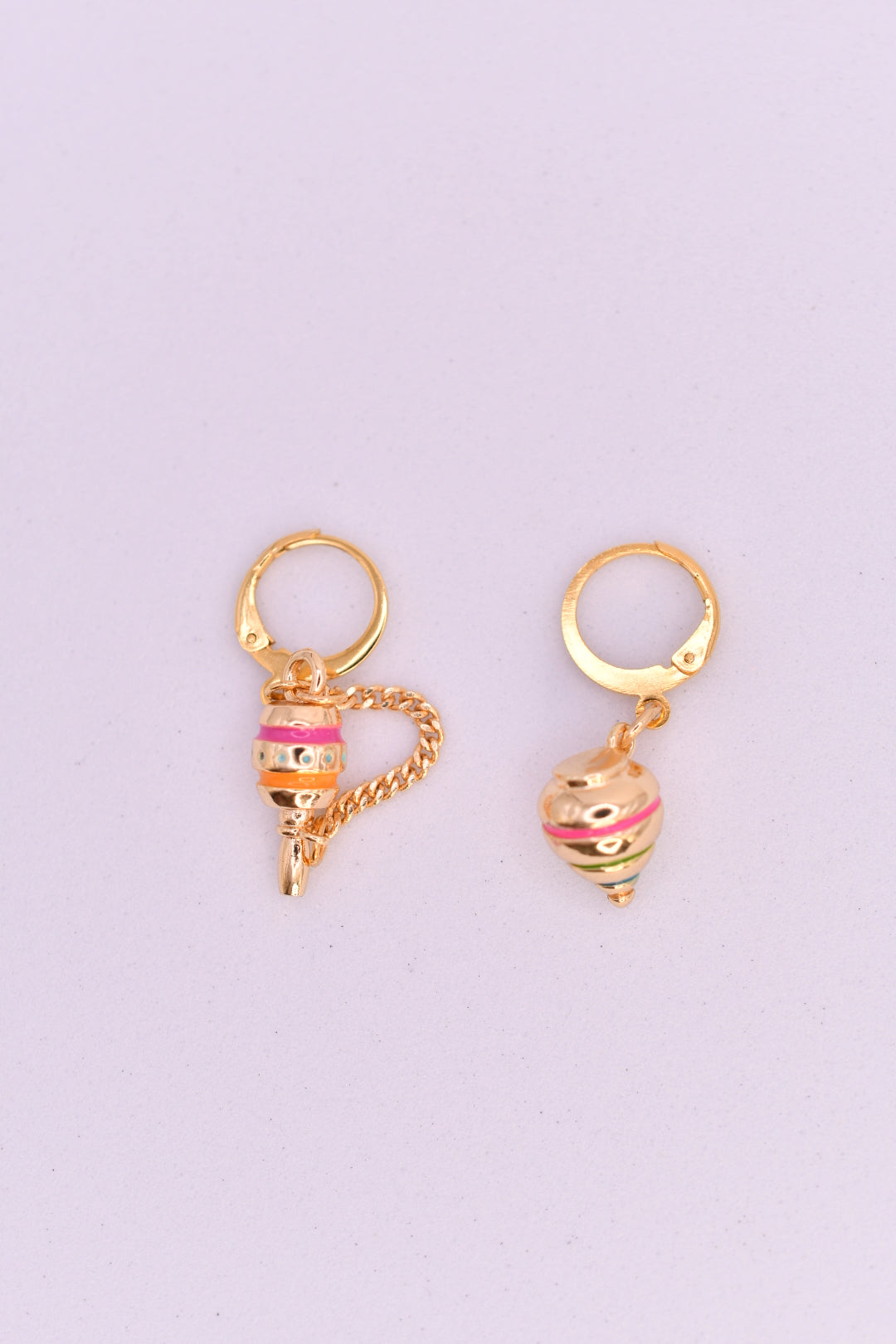 Par de aretes tipo huggies de acero inoxidable con dijes en chapa de oro 14k