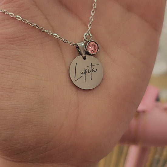 Tu nombre en una plaquita con la piedra del color que elijas!