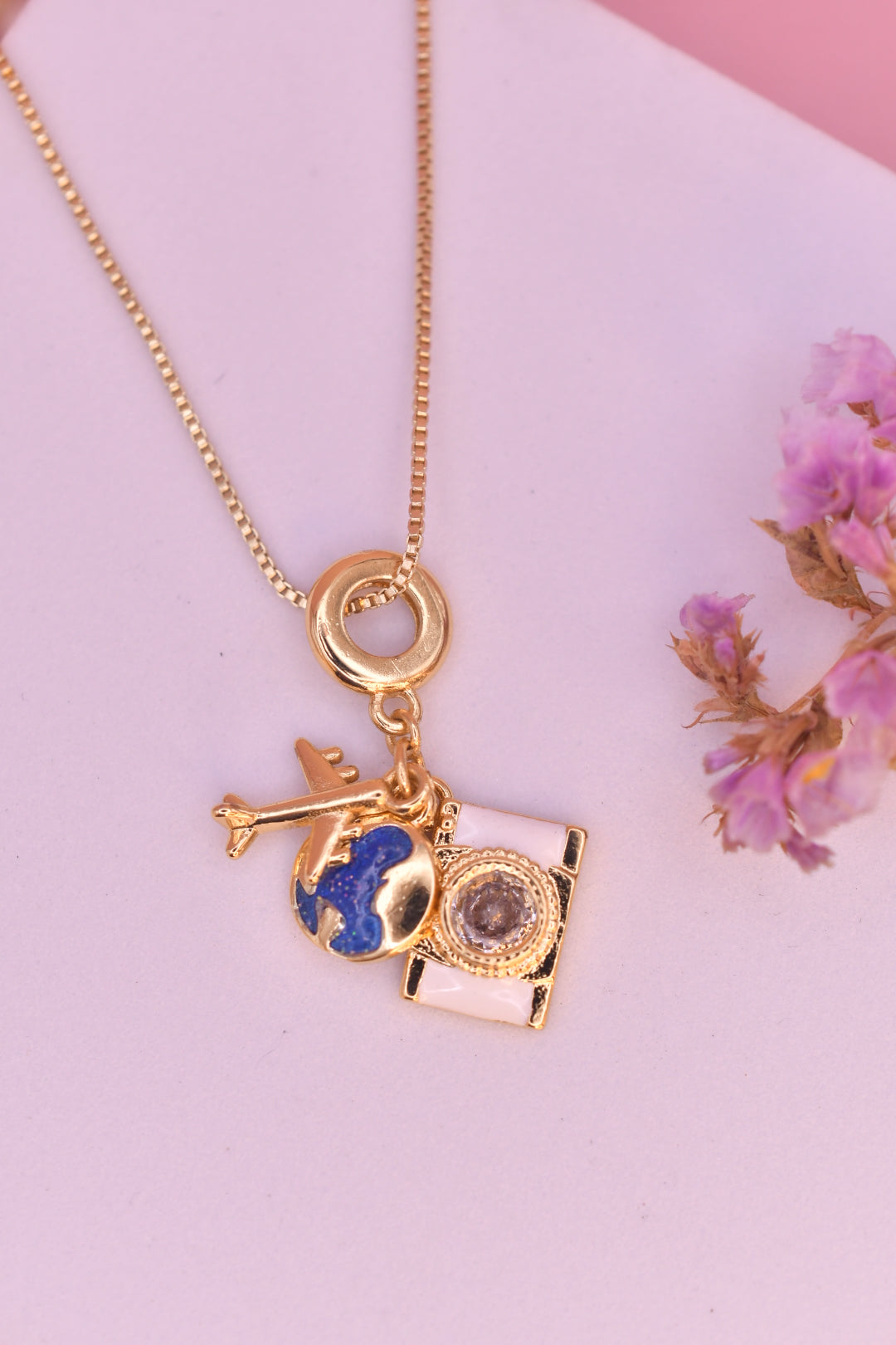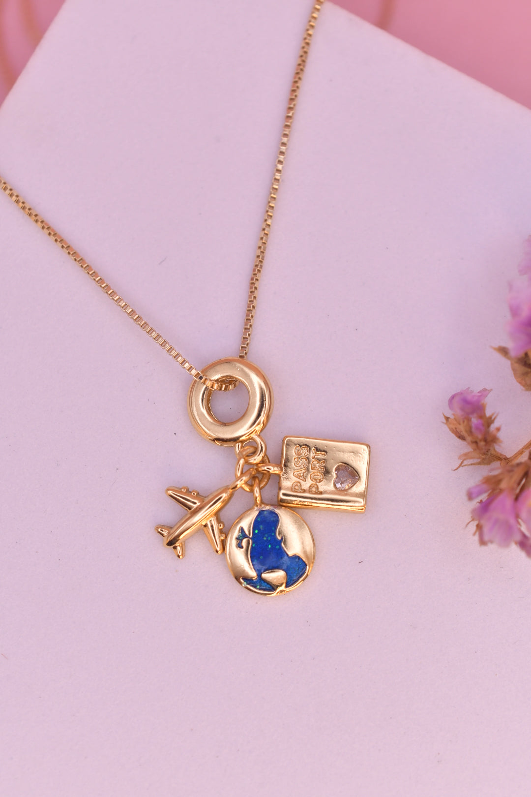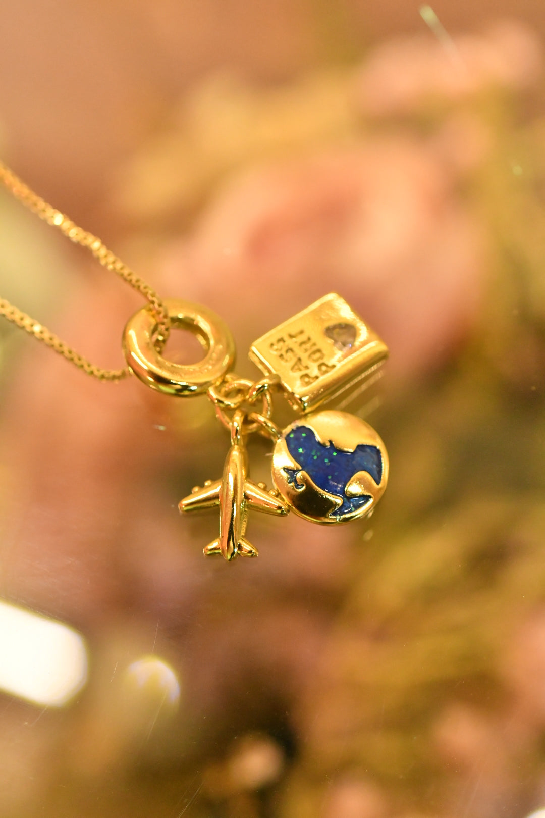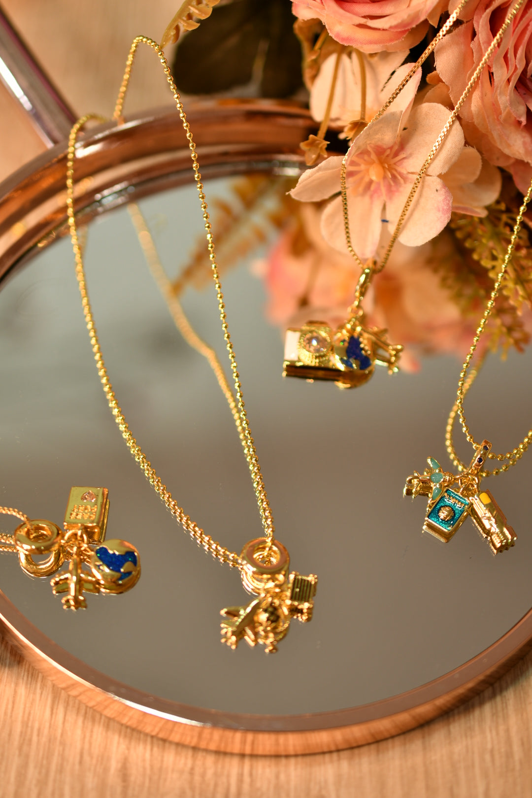 Multidije de chapa de oro con amuletos para manifestar viajes.