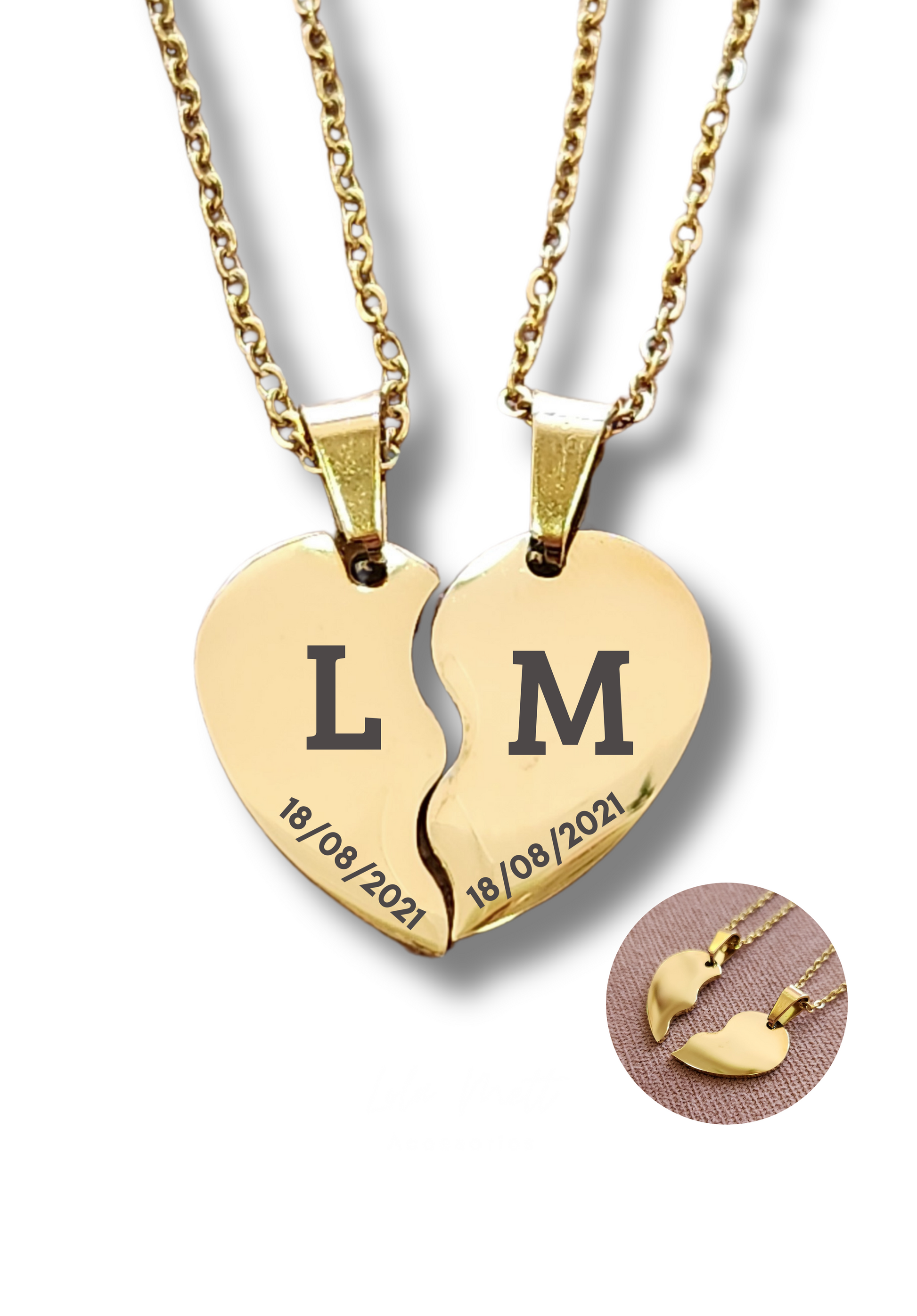Dijes con cadena de acero inoxidable grabado con inicial y fecha (opcional).