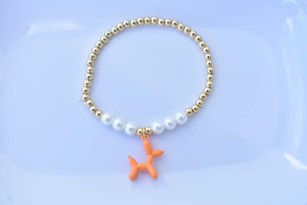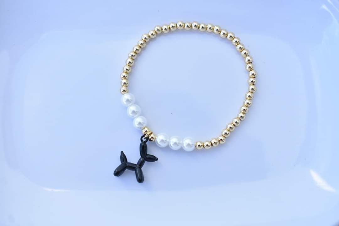 Pulsera de cuentas chapa de oro 18k con perlas de cristal y dije acrilico de perrito