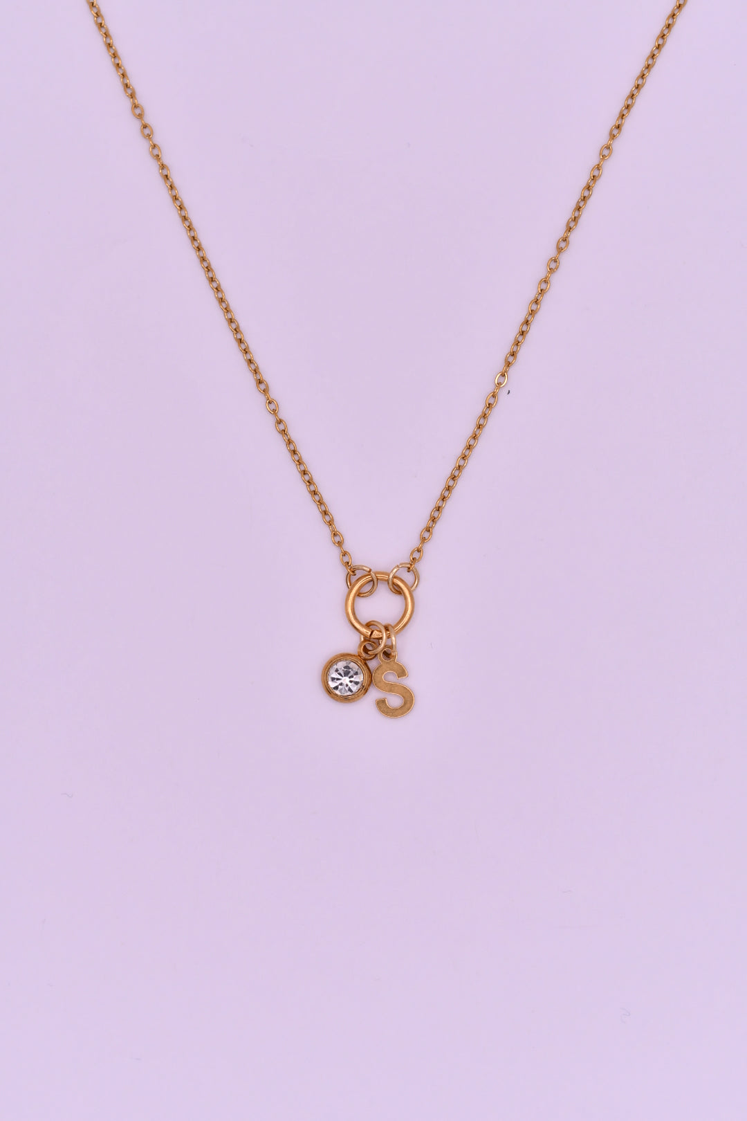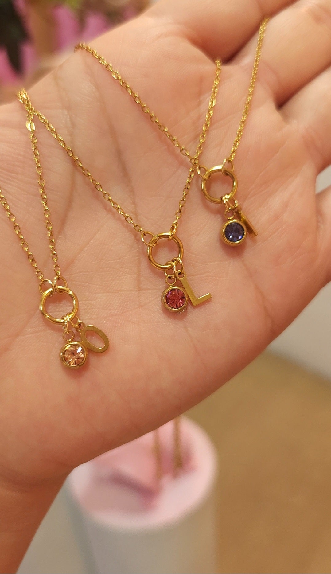 Dije de Inicial y cristal de color a elegir  con cadena de acero inoxidable.